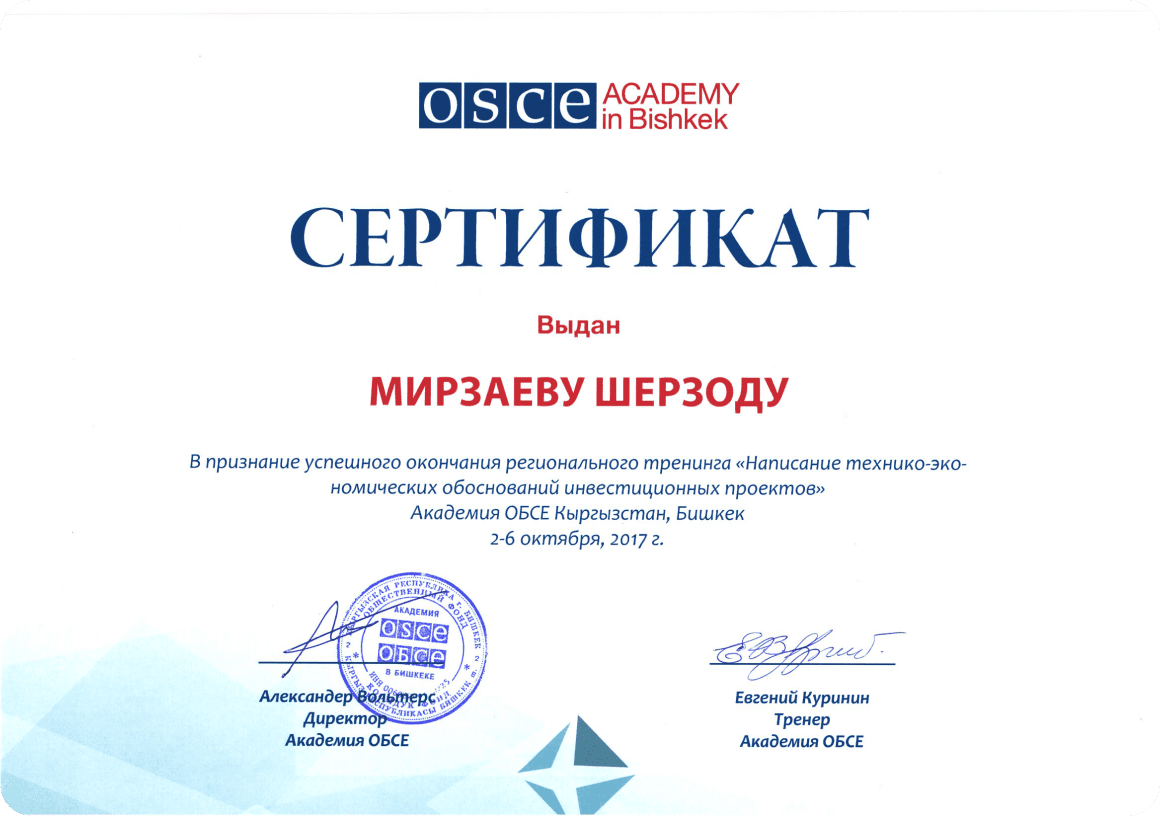 OSCE Academy Certificate